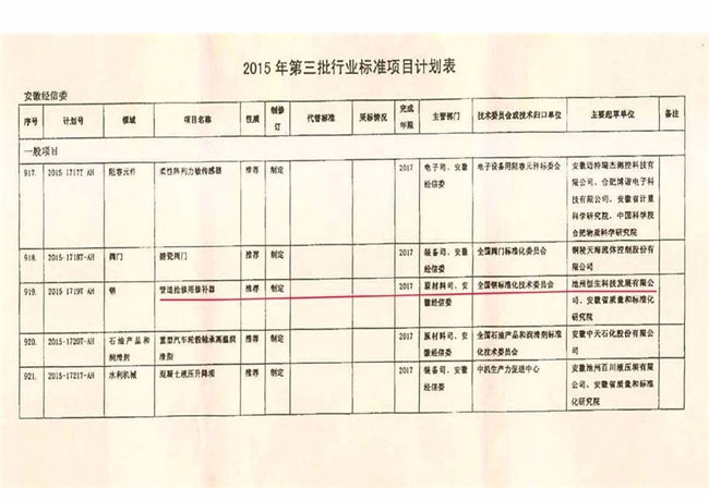 我公司起草管道修補(bǔ)器行業(yè)標(biāo)準(zhǔn)證明